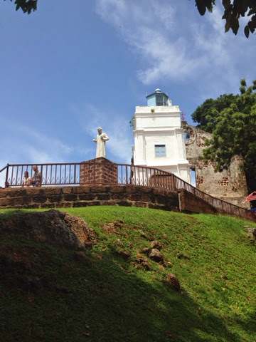 Through the shopping centre to a ruin of Portuguese fort later the addition of the Dutch badge! Up the hill to a church ruin. The church of our lady of enunciation/St Paul's.